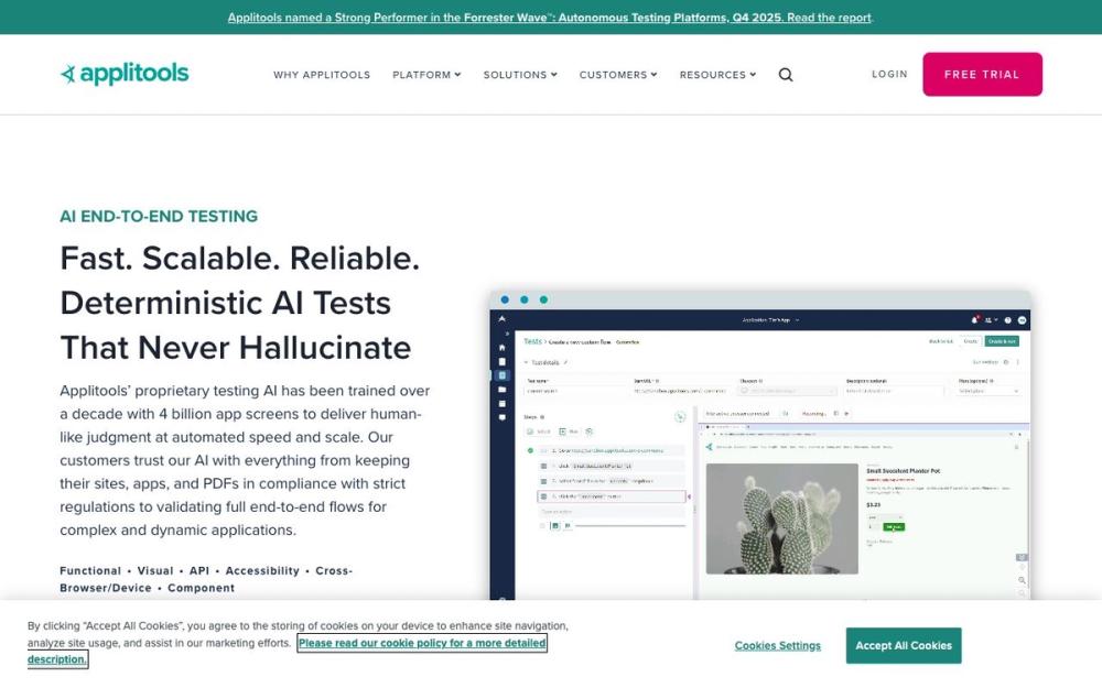 Applitools is a modern software testing platform that helps teams release high-quality software faster by automating visual testing and monitoring.