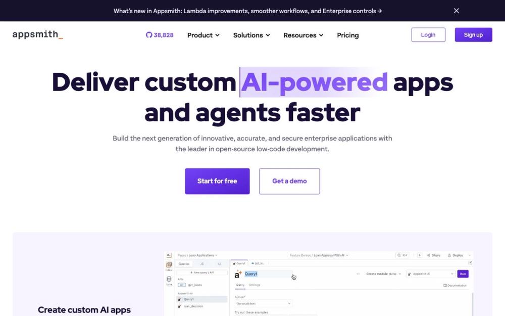 Appsmith is a low-code platform designed to help developers build internal tools rapidly. It offers a drag-and-drop interface with pre-built UI widgets, allowing users to connect to various data sources and APIs to create custom applications without extensive coding. Appsmith is particularly useful for building admin panels, dashboards, and other internal applications that streamline business operations.