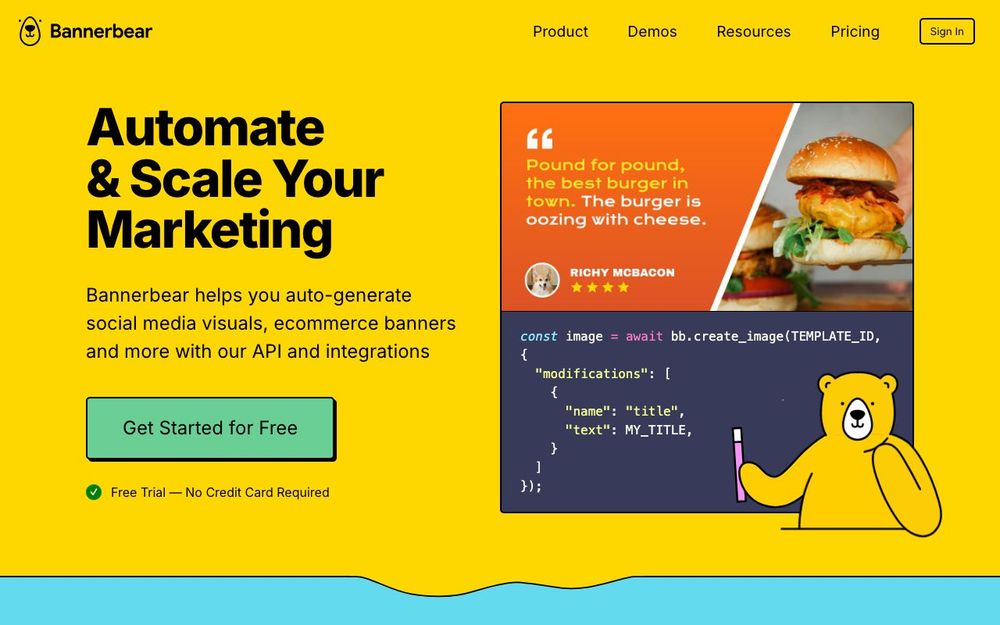 Bannerbear is a visual automation platform that allows you to auto-generate social media images, e-commerce banners, and marketing visuals with an API and integrations.
