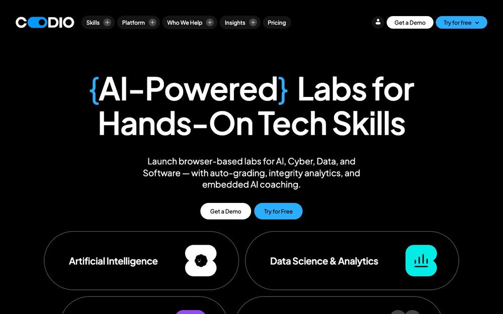 Codio is an all-in-one, browser-based Learning Experience Platform (LXP) designed specifically for computer science and technical skills training. It combines a high-performance Ubuntu-powered IDE with advanced instructional tools, allowing educators to deliver hands-on labs without infrastructure overhead. The platform supports over 40 programming languages (including Python, Java, C++, and SQL) and features containerized workspaces that spin up in seconds, ensuring a consistent environment for every learner. Its core value lies in reducing 'tech frustration' and administrative burden through automated grading and real-time learner analytics.
